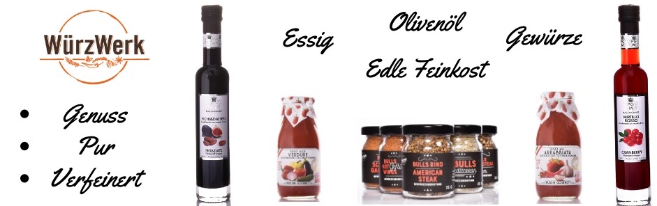 Edle Feinkost. Exzellenter Essig. Erstklassiges Olivenöl. Kochen ist Genuss! Deshalb bietet WürzWerk dazu die besten Produkte aus der Natur mit wohltuender, vitalisierender Wirkung.
